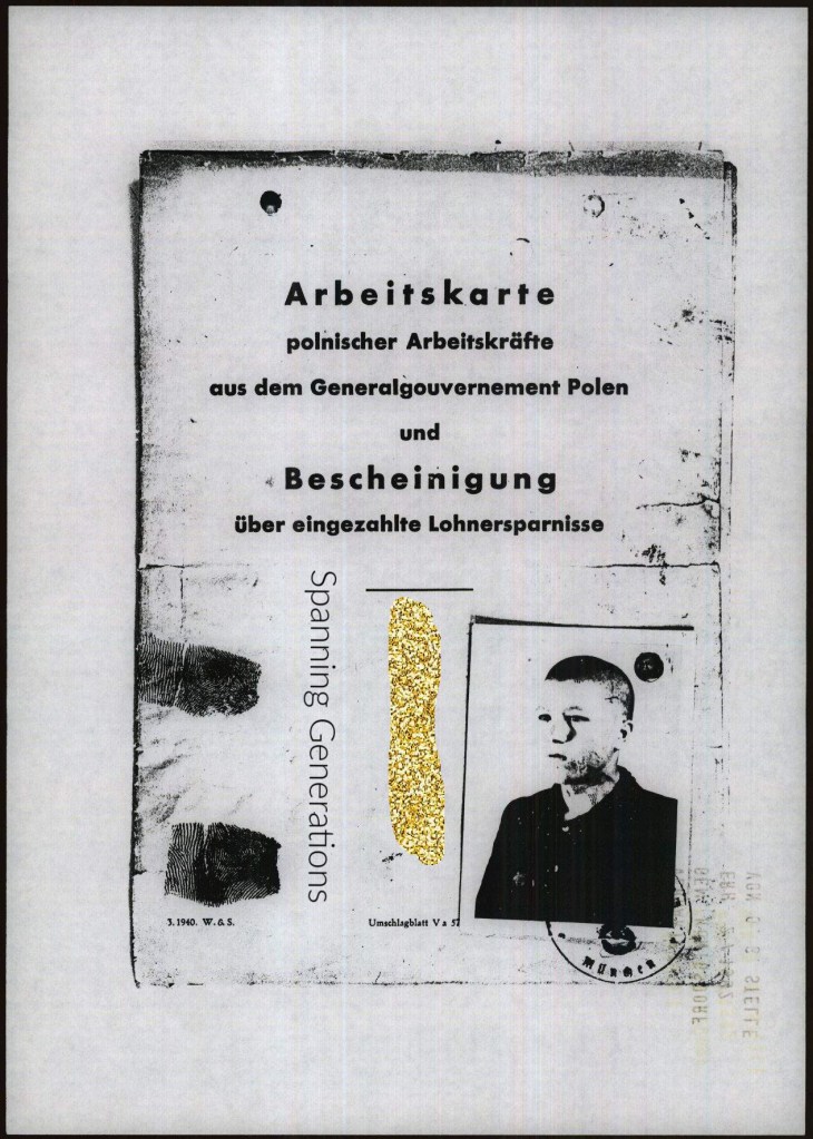 To the right, you’ll see an “official” document from a workcamp – the man in the photo is my maternal grandfather as a young man, freshly arrived to work on a farm during WWII.